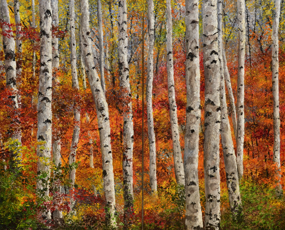 work가을 자작나무, 2015, oil on canvas, 145.5x89.4x2ea