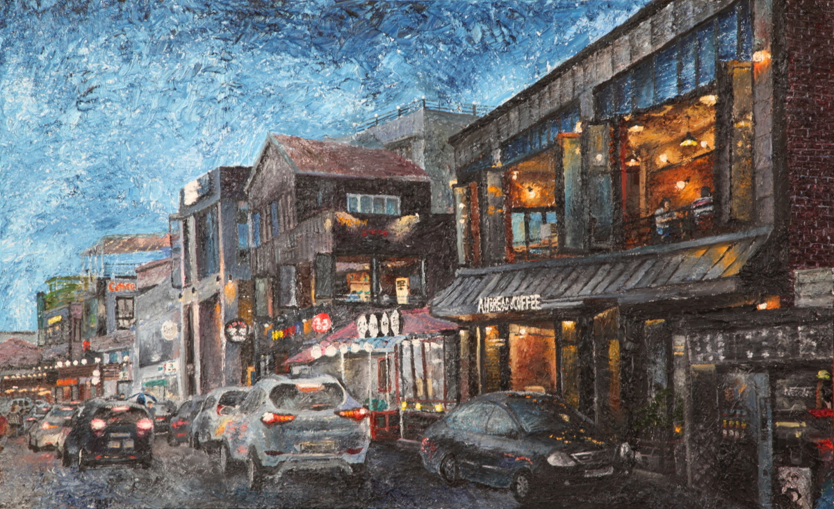 work안목커피거리, 2017, oil on canvas, 65.1x100.0