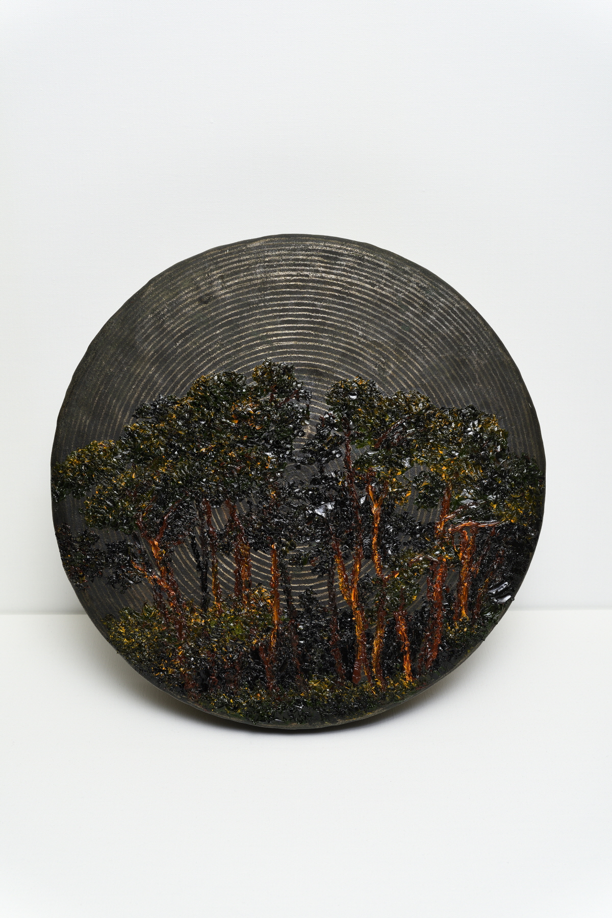 work초당저녁소나무, 2020, oil on Jing, dia38xh9cm