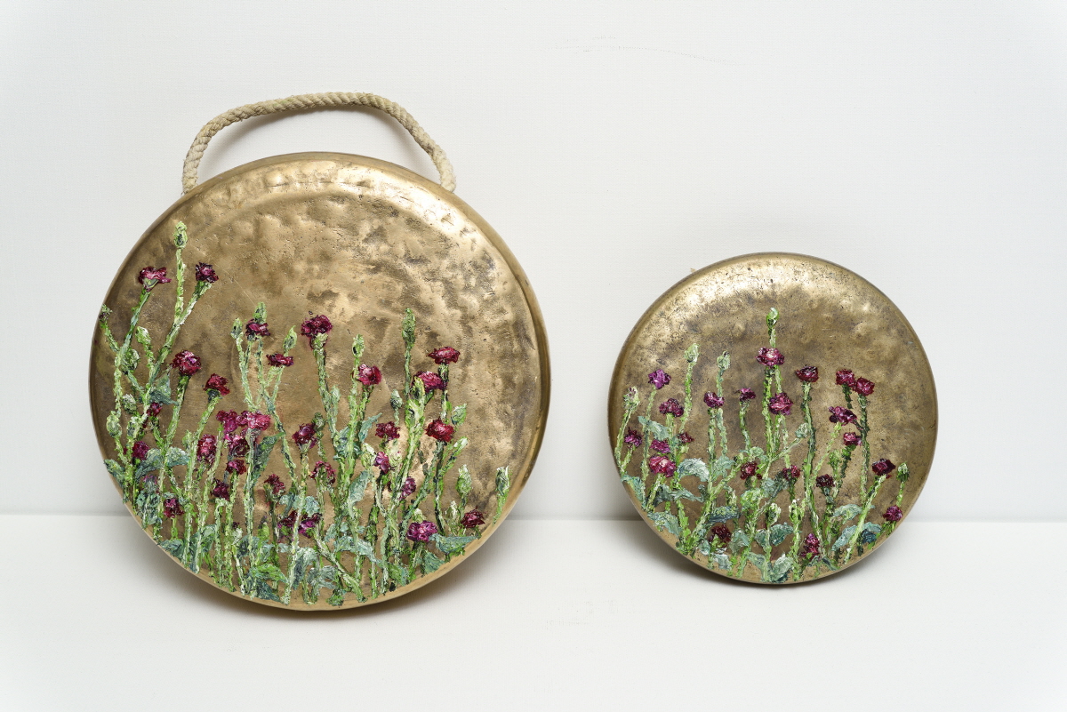 work들꽃,2020, oil on Kkwaenggwari,dia20xh4cm